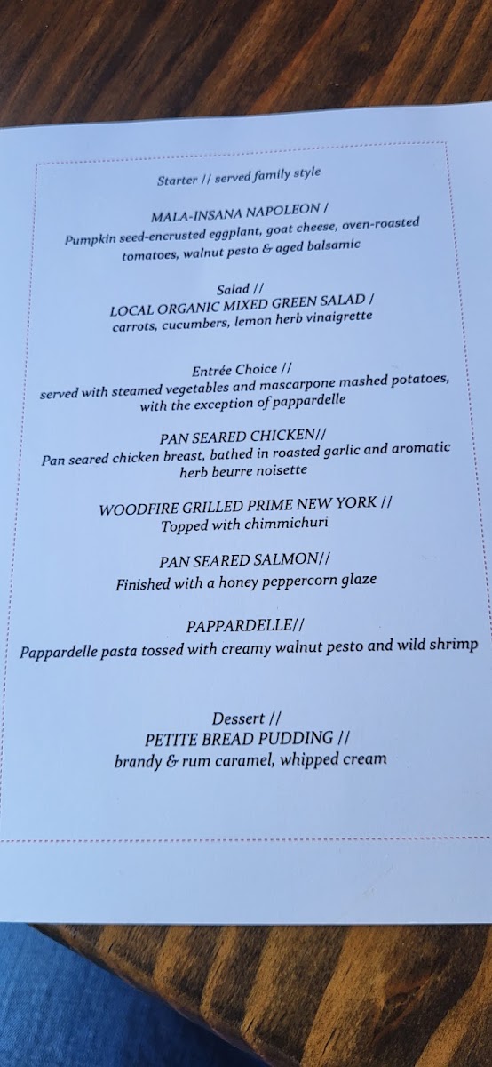 Out of the handful of great restaurants in the Fresno area, I chose Cracked Pepper Bistro based on the menu items and pictures here on Google Maps, and they certainly did not disappoint! Worth mentioning was the Mala Insana Napoleon appetizer—a must-order item—as it was so greaaaat! Different kind of textures and flavors so well blended together: the crispiness from the pumpkin seed encrusted eggplant contrasted with the softness of the tomatoes, paired with the creaminess/smoothness from the goat cheese and the crunchiness from the walnut pesto between the veggie layers. There were a lot going on, but harmoniously! So good! The Stilton Blue Salad was also very good. I have never seen little gem lettuces and was pleasantly surprised by the small size, which made very good presentation. The saltiness of the blue cheese paired very well with the sweetness of the Asian pear and candied walnuts, but I wish there were just a bit more of the pear and walnut pieces to make a better balance. I also wish the port wine reduction to be a little stronger so the taste will come through better. We were full after our meal but couldn't resist ordering the Bread Pudding. It's so nice that they offer an unbaked option so we can bake it at home to enjoy. It came with instructions and was easy/error-proof to bake, and the results were great and delicious! Definitely another must-order item! The Ahi Tuna appetizer and Short Ribs entree we ordered were well-executed well and good-tasting (as expected). So this was our dinner experience: food was delicious, and the service was meticulous and warm but not too much. We will definitely be back!